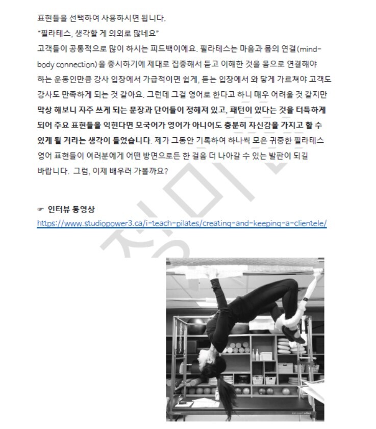 -필라테스 영어 티칭에 필요한 실전 영어표현을 전자책 한 권으로 독학하고 싶으신 분